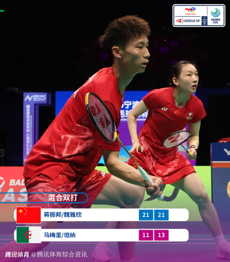 2025-04-27 19:10北京时间4月27日,2025年苏迪曼杯小组赛A组,中国3-0阿尔及利亚,提前锁定比赛胜利。