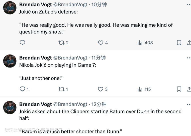 2025-05-02 14:00北京时间5月2日,NBA季后赛,掘金客场以105-111惜败快船,总比分被对手扳成3-3,双方将迎来抢七,此役约基奇空砍25分7篮板8助攻,赛后约基奇接受了媒体的采访。